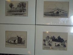 | 1930's ink drawing of California Missions by Phillip Kassel, Phila. Ledger Artist |